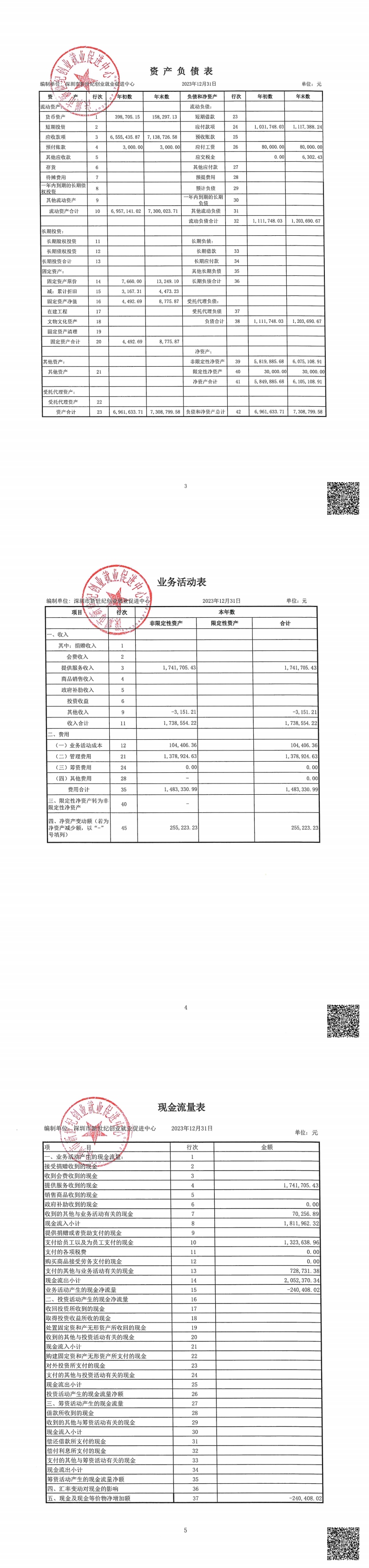 2023年深圳市新世纪创业就业促进中心-财务情况公示