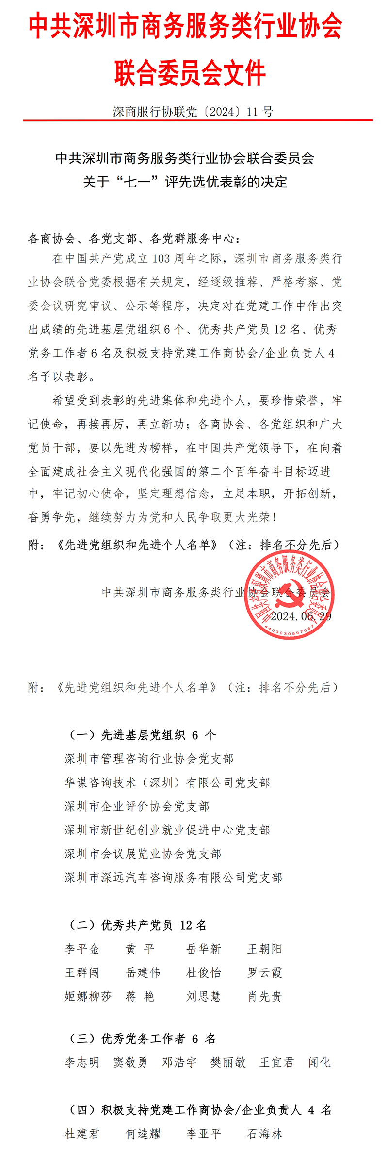 喜报:深圳市新世纪创业就业促进中心党支部被评为先进基层党组织