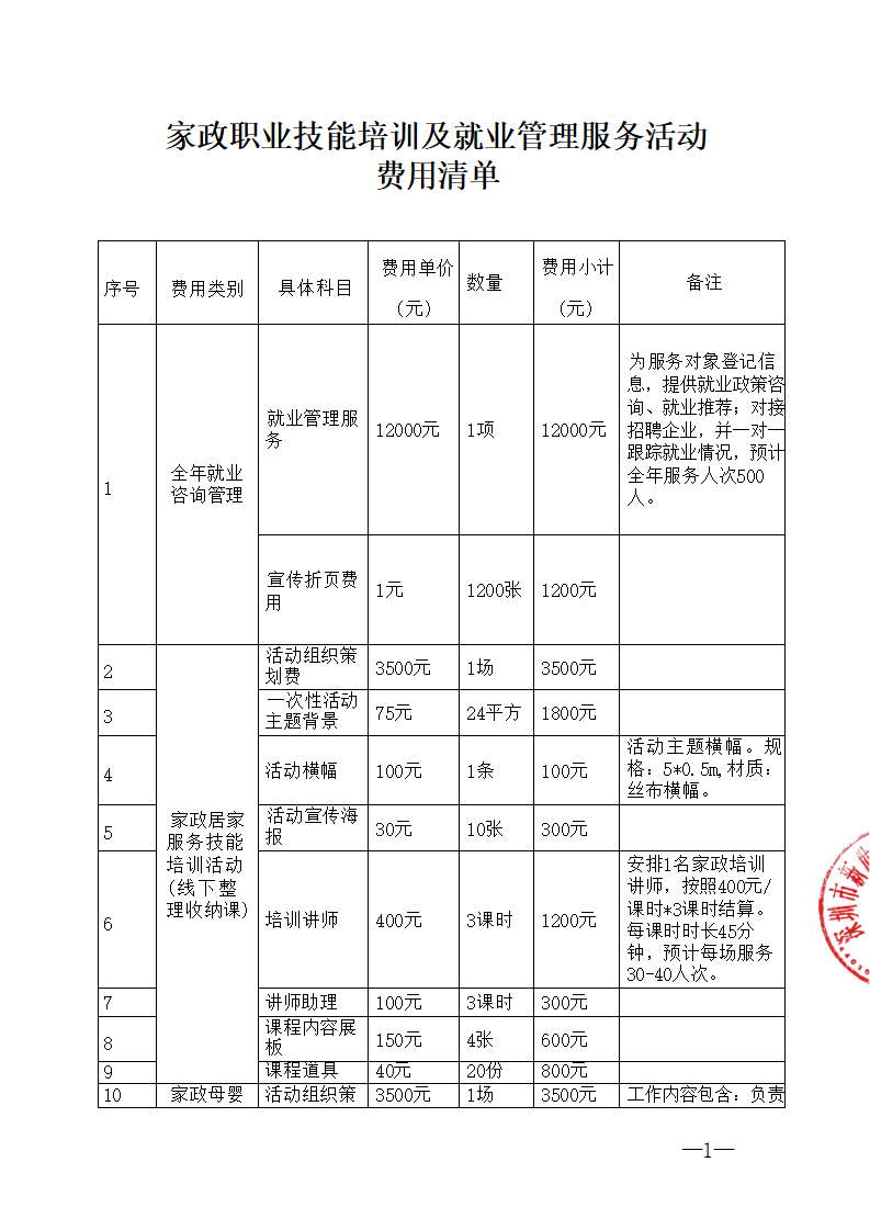 【民生微实事财务公示】华强北街道家政职业技能培训及就业管理服务活动费用公示